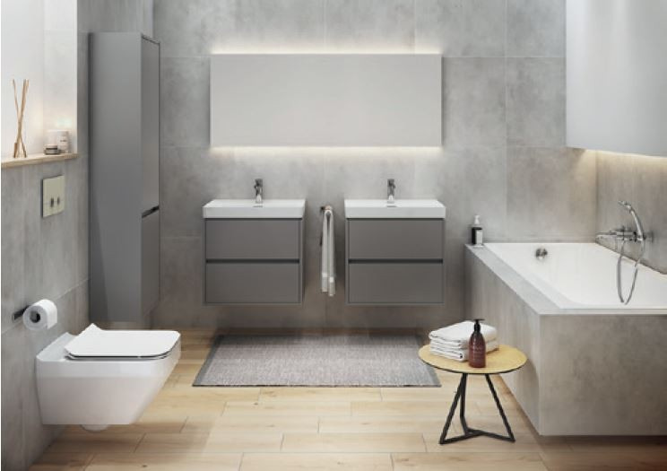 PODROBNOSTI O PRODUKTU Výška: 53,3 cmŠířka: 59,4 cmHloubka: 44,7 cmINFORMACE Závěsná umyvadlová skříňka CREA 60 se dvěma výsuvnými boxy v šedém provedení, vyrobená moderní technologií AQUASAFE /zvýšená odolnost proti vlhkosti/. Skříňka působí elegantním vzhledem díky zapuštění přední části a využití skrytých madel.