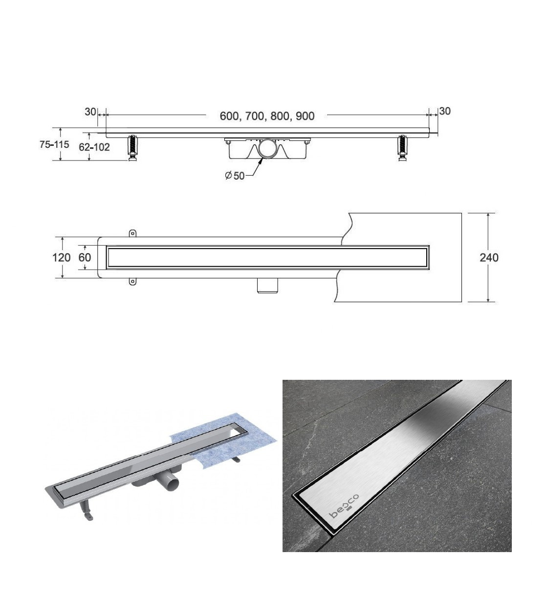 Kvalitně a moderně zpracovaný odtokový žlab. Tělo žlabu i vlastní rošt je vyroben z velice kvalitní nerezi, rošt s povrchovou úpravou kartáčovaný chrom. Rošt lze použít buď pro vložení dlažby, nebo jako pohledový (kartáčovaný chrom). Tento žlab obohatí každou koupelnu o nádech luxusu. Sada obsahuje: žlab se sifonem a nožičkami, rošt a hydroizolační pásku.