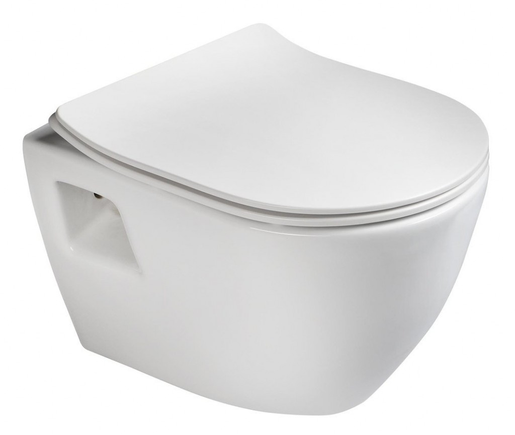 Technická data: Velikost: 55x35x34 cm Upevnění: závěsné Splachovací systém: Rimless (bez ráfku) bílá barva Materiál: sanitární keramika Typ prkna: Pomalé zavírání bílá barva Materiál: Duroplast Tenká verze: Ano Snadné uvolnění: Ano Kovové závěsy: Ano.
