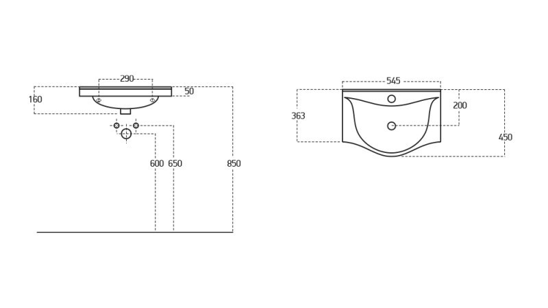koupelnová skříňka závěsná s keramickým umyvadlem UM-ASU 60, 1 x police LTD, závěsné provedení s kovovými nožkami